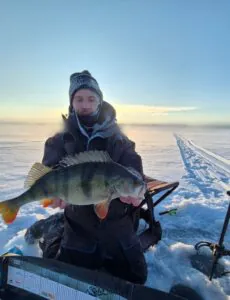 SM-kiiskipilkki kisattiin Lohjan Salkolanjärvellä tuulessa ja tuiskussa – Miesveteraani Ari Grönlund pilkki koko kisojen suurimman saaliin
