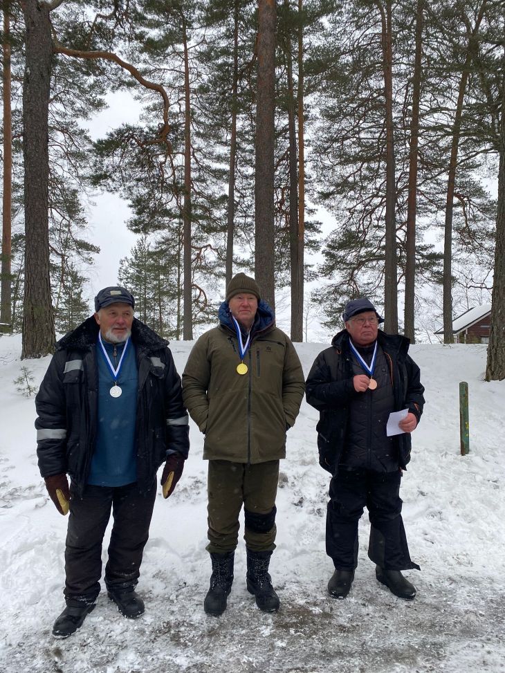 Joona Myllerille ja pronssia Vihdin Kalastusseuran Jukka Väre. Miesveteraaneista paras oli Ari Grönlund ja toiseksi sekä kolmanneksi sijoittuivat Mauno Lepistö ja Raimo Vallittu Vuosaareen Urheilukalastajista.