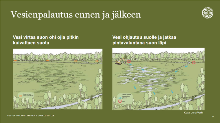 Etelä-Pohjanmaan ELY-keskuksen koordinoima Vesienpalautus suojelusoille: opas käytännön toimijoille on julkaistu. Oppaaseen on koottu ohjeita ja kokemuksia vesienpalauttamisesta.